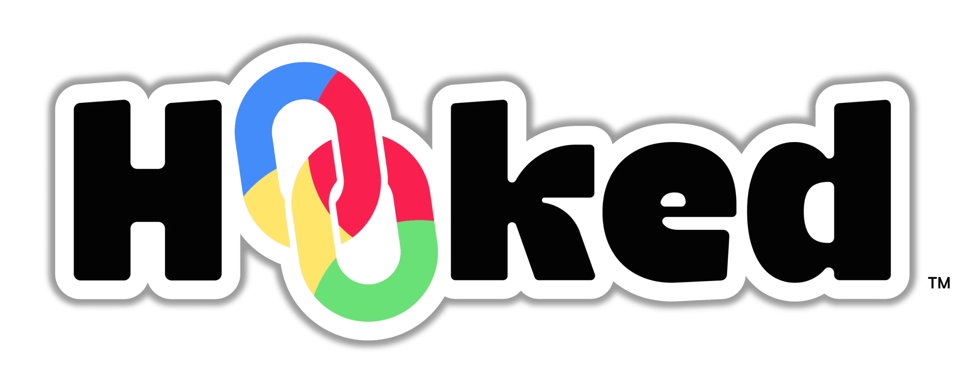 The Hooked logo combines the bold simplicity of a wordmark with the symbolism of the chain link.
